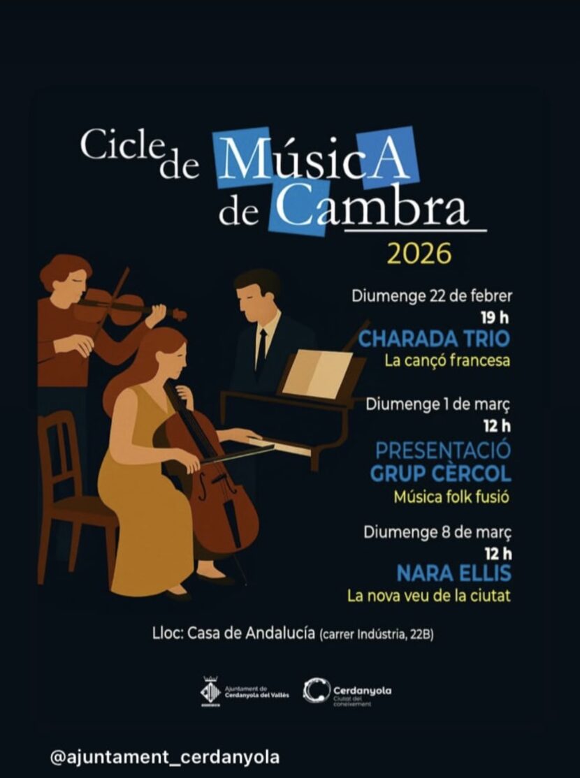 El próximo domingo 22 de Febrero, a las 19:00 actuaremos en la Casa de Andalucía inaugurando el Cicle de Música de Cambra de Cerdanyola 2026. Os presentaremos nuestro disco La Chanson vol 1. publicado el pasado mes de Octubre en todas las plataformas y algunas sorpresas musicales que tendréis que saborear in situ. Os esperamos!!